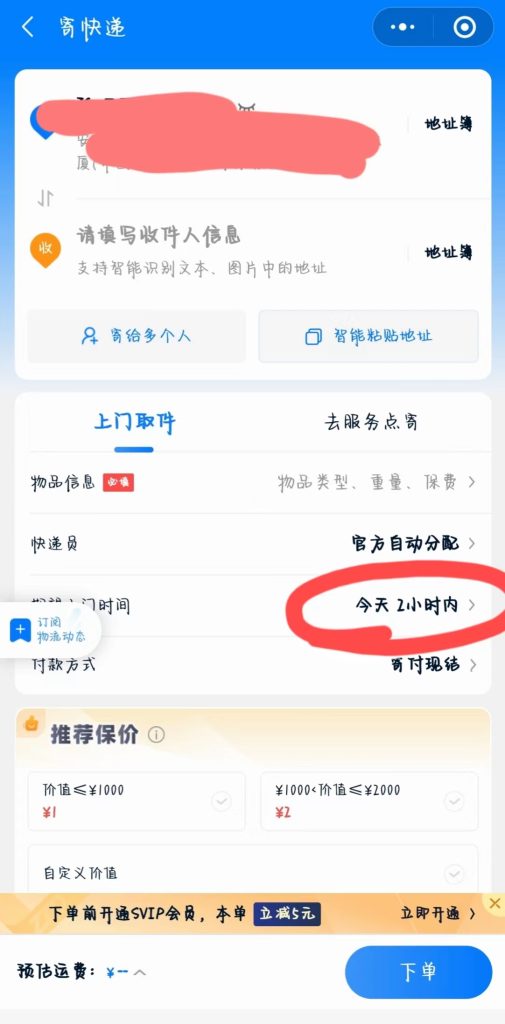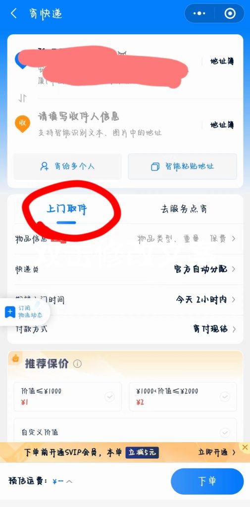 7、所有信息都填完之后,可以按照自己的需求選擇去服務店寄還是上門自提。如果是去服務點寄就選擇要去的地點過去就行;如果是上門自提注意一下選擇上門時間,避免快遞員來取件但是家里沒人的情況。
