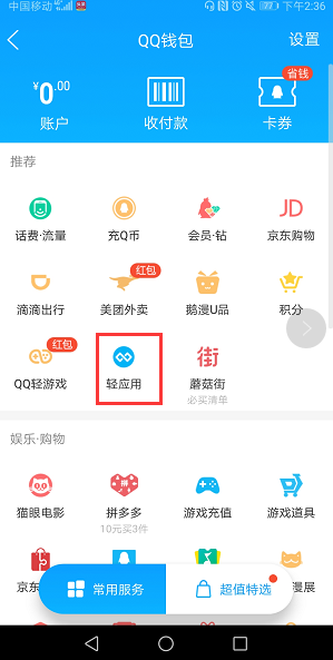 安卓用戶可以通過手機QQ進入QQ錢包的“輕應用”入口,找到目前正在上線測試的“輕應用/輕游戲”。此外還可以通過1對1聊天、群聊等方式與好友分享輕應用;