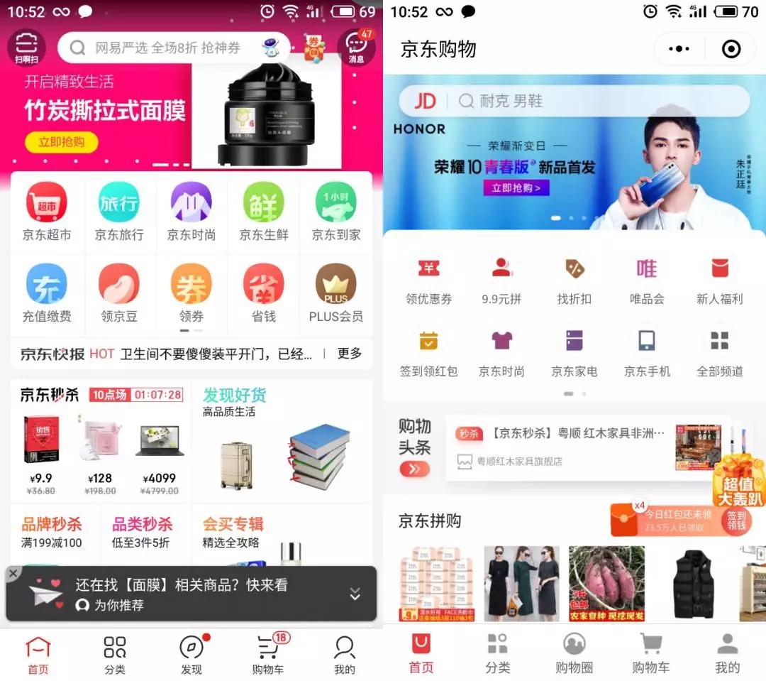 (左邊為京東APP,右邊為京東購(gòu)物小程序)